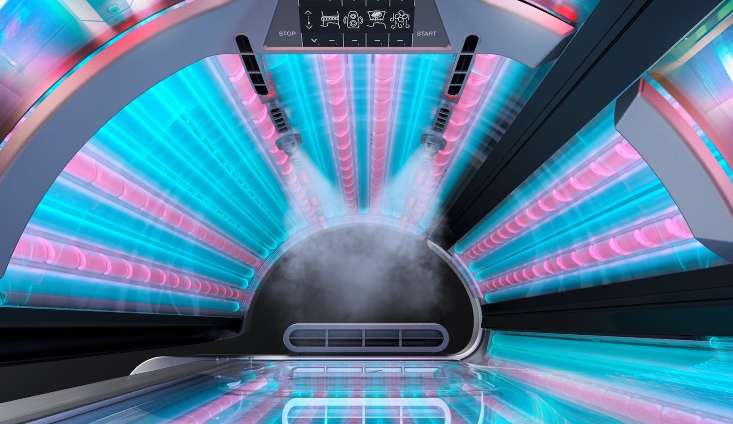 The MegaSun 8000 Alpha Hybrid imitates natural sunlight with all its effects on the body and mind — from traditional/subtle to Caribbean/intensive. Seventy HyperRed Beauty Boosters regulate the skin's moisture content and stimulate natural collagen formation — the number one anti-ageing agent. The result: Wrinkles disappear, and the skin appears firmer and youthfully fresh.